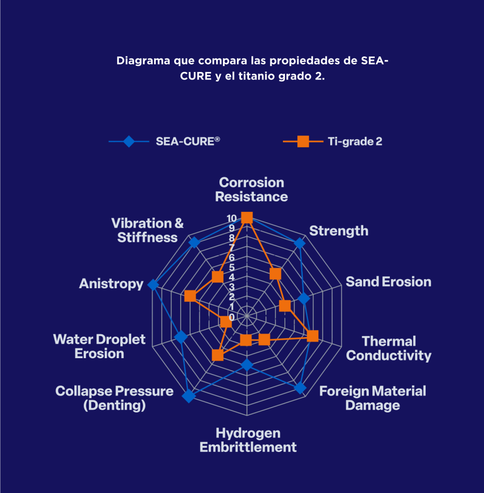 Esto indica que, para un tubo del mismo tamaño, SEA-CURE es considerablemente más resistente y robusto que el titanio.